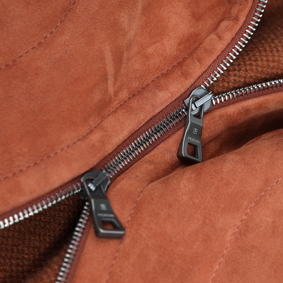 Un capo che racconta l’essenza dell’artigianalità italiana e della cura dei dettagli che da sempre contraddistinguono Fioroni. Questa giacca bomber unisce la morbidezza del cashmere all’eleganza naturale del montone, creando un equilibrio perfetto tra comfort, calore e stile contemporaneo. Il corpo è realizzato in montone pregiato, un materiale che regala una texture vellutata e una sensazione di avvolgente protezione, mentre le maniche in puro cashmere ne esaltano la leggerezza e la raffinatezza. I dettagli in suede completano il design, aggiungendo un tocco di sofisticata matericità che definisce la silhouette con discrezione. Il taglio bomber, con zip centrale e collo in montone a contrasto, dona al capo un carattere deciso ma sempre elegante. Pensata per l’uomo che ama distinguersi con naturalezza, questa giacca accompagna perfettamente sia look urbani sia outfit più formali, mantenendo sempre un’eleganza rilassata e senza tempo. Interamente realizzata nel nostro laboratorio sulle rive del Lago Trasimeno, la giacca bomber in montone e cashmere rappresenta l’eccellenza della lavorazione artigianale Fioroni: ogni fase, dalla selezione dei materiali alla rifinitura finale, è curata con attenzione per offrire un capo che duri nel tempo e conservi la sua bellezza stagione dopo stagione. La tonalità ruggine ne sottolinea l’anima calda e sofisticata, ideale per la stagione autunno/inverno e perfetta per aggiungere un accento distintivo al guardaroba maschile.